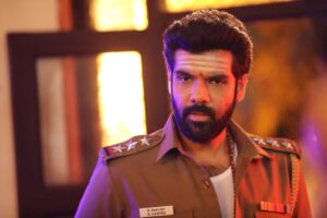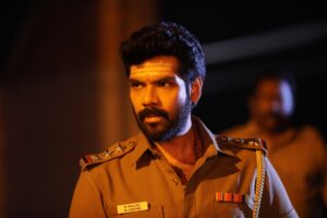 கதாபாத்திரத்தில் நடித்திருக்கும் சிபி சத்யராஜ், காக்கி உடையில் மிடுக்காகவும்,