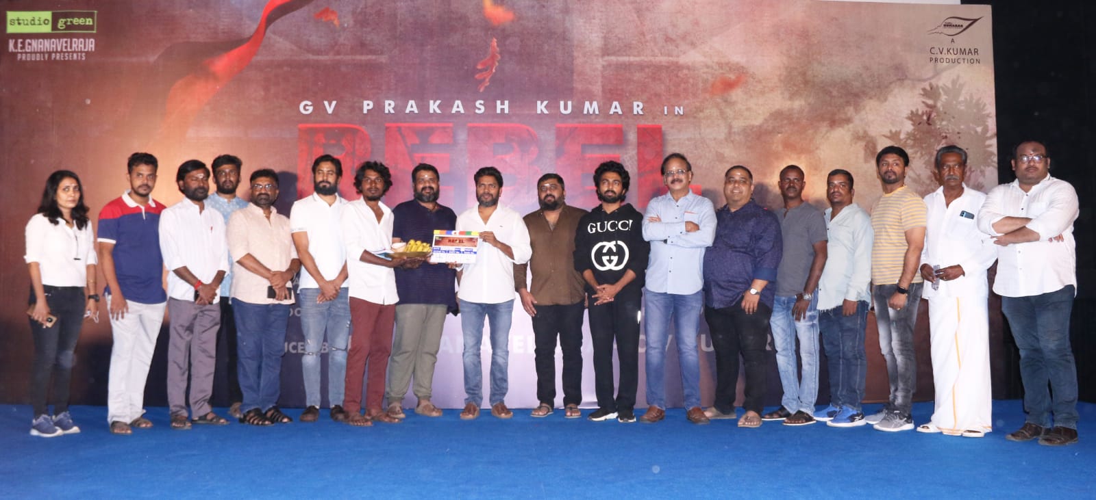 STUDIO GREEN சார்பில் K E ஞானவேல் ராஜா மற்றும் Thirukumaran Entertainment சார்பில் C V குமார் இணைந்து வழங்க, GV பிரகாஷ் குமார் நடிப்பில், அறிமுக இயக்குநர் நிகேஷ் இயக்கும் திரைப்படம் “ரிபெல்”. பத்திரிகை ஊடக நண்பர்கள் முன்னிலையில், படக்குழுவினர் மற்றும் திரைப்பிரபலங்கள் இயக்குநர் பா ரஞ்சித், இயக்குநர் நலன் குமாரசாமி, தயாரிப்பாளர் அம்மா சிவா, நடிகர் ஆரி மற்றும் இயக்குநர் கௌரவ் உட்பட பலர் கலந்து கொள்ள, இப்படத்தின் பூஜை இன்று இனிதே நடைபெற்றது.