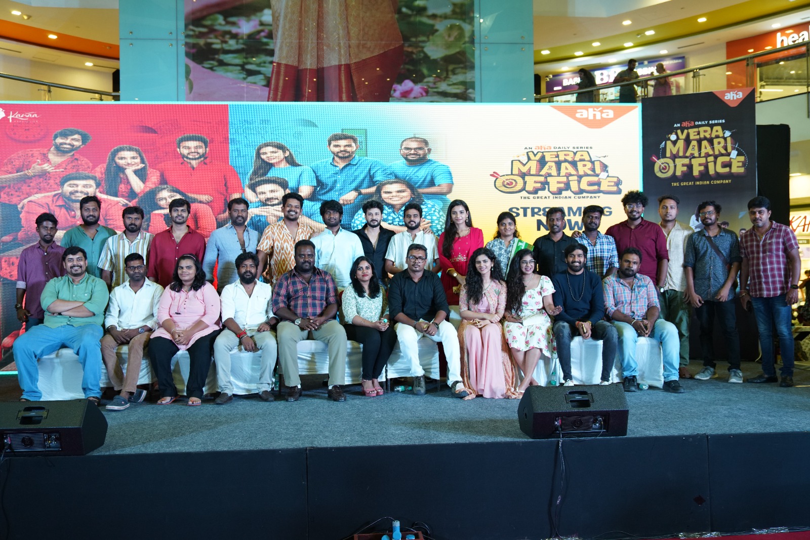 ஆஹா ஓடிடி இணையதளத்தில் ‘டெய்லி சீரிஸ்’ வரிசையில் வெளியாகி இருக்கும் தொடர் “வேற மாறி ஆபிஸ்”. ஆறு எபிசோடுகள் வெளியான நிலையில் வெற்றிகரமாக பதினைந்து மில்லியனுக்கும் அதிகமான பார்வைகளை இந்த தொடர் பெற்றிருக்கிறது. இதைக் கொண்டாடும் வகையிலும் இன்னும் அதிகமான மக்களுக்கு இந்தத் தொடரை கொண்டு சேர்க்கும் வகையிலும் சென்னை வடபழனியில் உள்ள நெக்சஸ் விஜயா மாலில் ஒரு நிகழ்வு நடத்தப்பட்டது. இந்த நிகழ்வில் ‘வேற மாறி ஆபிஸ்”-ன் நட்சத்திரங்களான விஷ்ணு விஜய், ஆர்.ஜே.விஜய், விக்கல்ஸ் விக்ரம், வி.ஜே.பார்வதி, ஷியாமா, லாவண்யா, வி.ஜே.பப்பு, சவுந்தர்யா நஞ்சுண்டன், கண்ணதாசன், சஞ்சீவ் ஆகியோருடன் இத்தொடரின் இயக்குநரான சிதம்பரம் மணிவண்ணன் மற்றும் தயாரிப்பாளர் சிவகாந்த் ஆகியோரும் கலந்து கொண்டனர்.